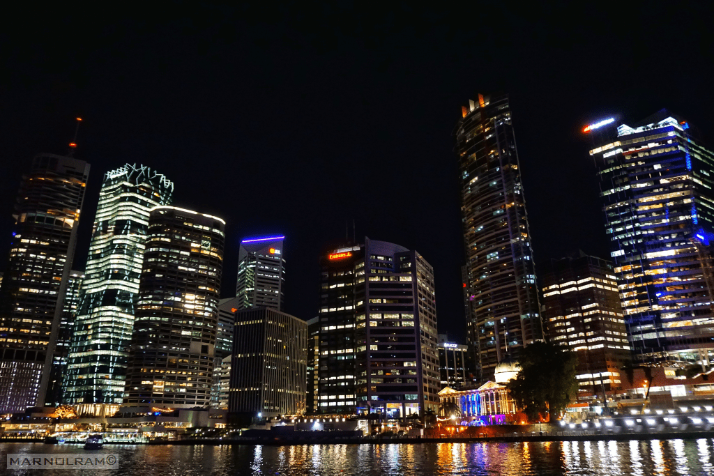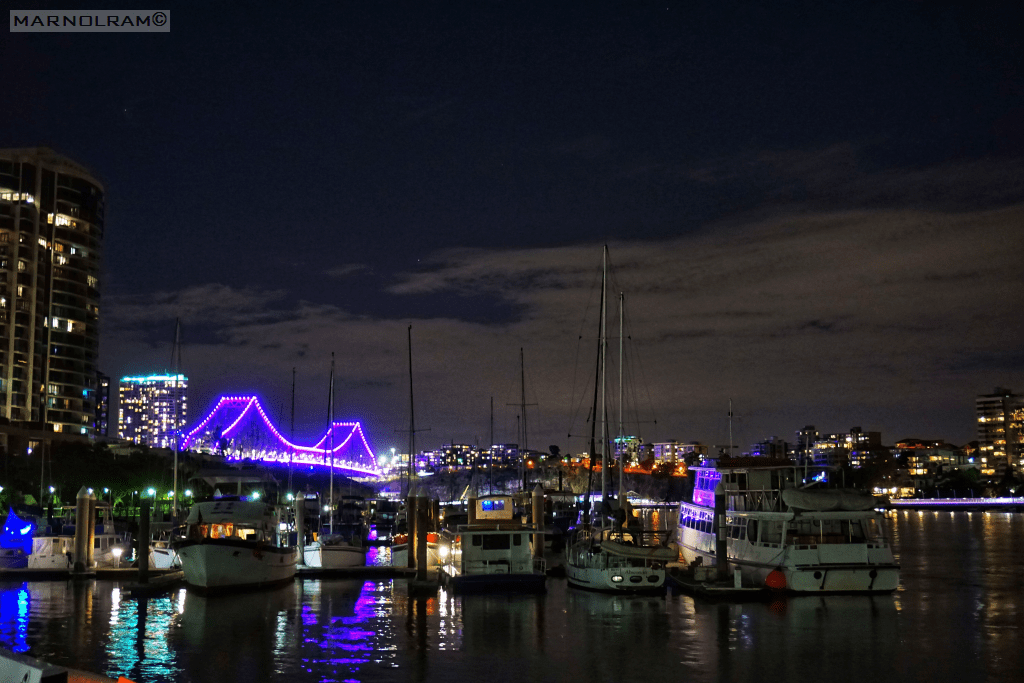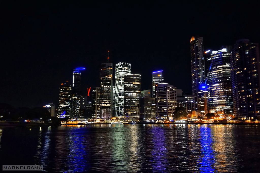 The night scene continues to amaze our eyes with Brisbane’s towering buildings surrounding the docks.