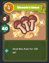 This card will help in restoring a portion of Axie’s health. By doing this, you will force your opponent to target your front Axie again while your damage dealing Axies are stacking up on cards.